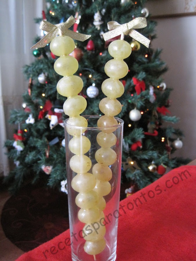 "Refrany; Per Cap dAny el dia sallarga un pam"Por Noche Vieja, el día se alarga un palmo. Sigo con ideas para presentar las uvas en nochevieja como continuación de ideas de presentación de las uvas para nochevieja parte uno En ésta presentación he pinchado los granos de una en limpiapipas y formado un ramillete cerrando con un lazo. Los limpiapipas los venden de todos colores La celebr ...
