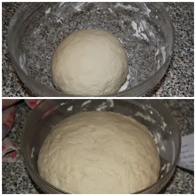 Amasamos bien, formamos una bola y la dejamos reposar hasta que doble su tamaño.