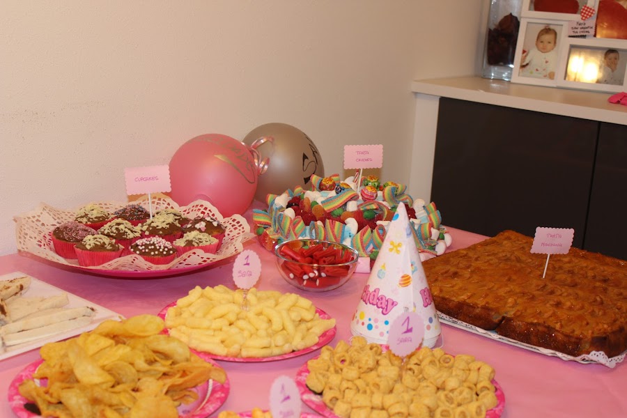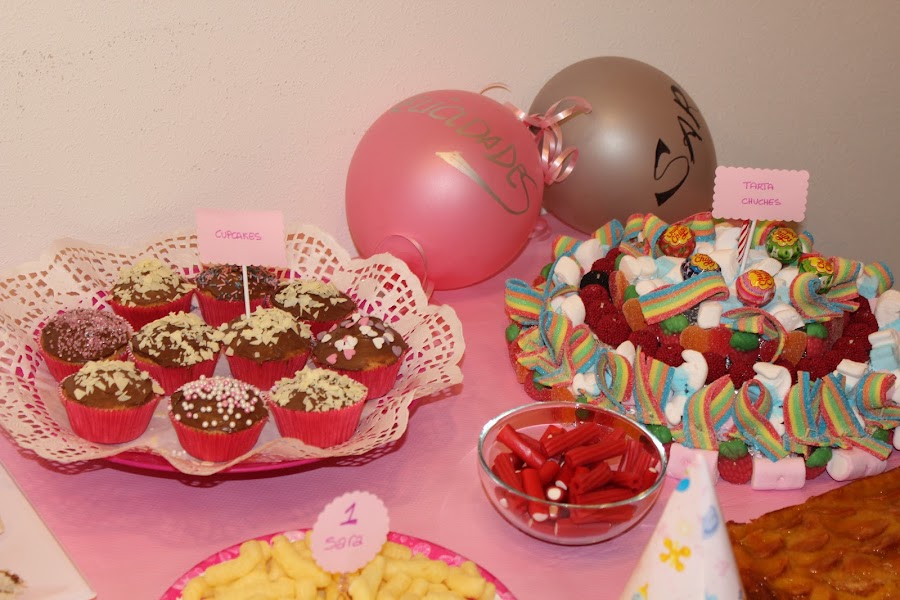 Vinieron un montón de familiares y amigos y aunque en casa no hay mucho sitio espero que estuvieran agusto. Decore un poco el salón y puse una mesa en plan bufet con toda la comida para que cada uno cogiese lo que quisiera. Mi mami me hizo una tarta de manzana de muerte uhmmmm, mi prima Itziar me hizo galletas y un bizcocho de chocolate espectacular, mi amiga Itzi me hizo la tarta de chuches y yo hice unos cupcakes con chocolate, todo eso de dulce además de más chucherías. Y luego un montón de cositas saladas. también hubo piñata aunque como no teníamos donde colgarla me subí a una silla y todos los niños abajo tiraron de las cuerditas y se pusieron morados de coger chuches y regalitos jiji.