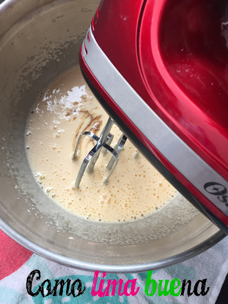 Batimos los huevos junto al azúcar a velocidad baja por 5 minutos. Agregamos la vainilla.