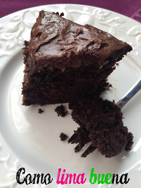 Esta es una receta llamada Torta de chocolate Old fashioned que vi en el blog Passion for Baking y me encantó. Tenía que probarla y, aprovechando el cumpleaños de una amiga, decidí hacerla. El resultado fue un bizcochuelo suave, esponjoso y húmedo. Aquí va la receta: