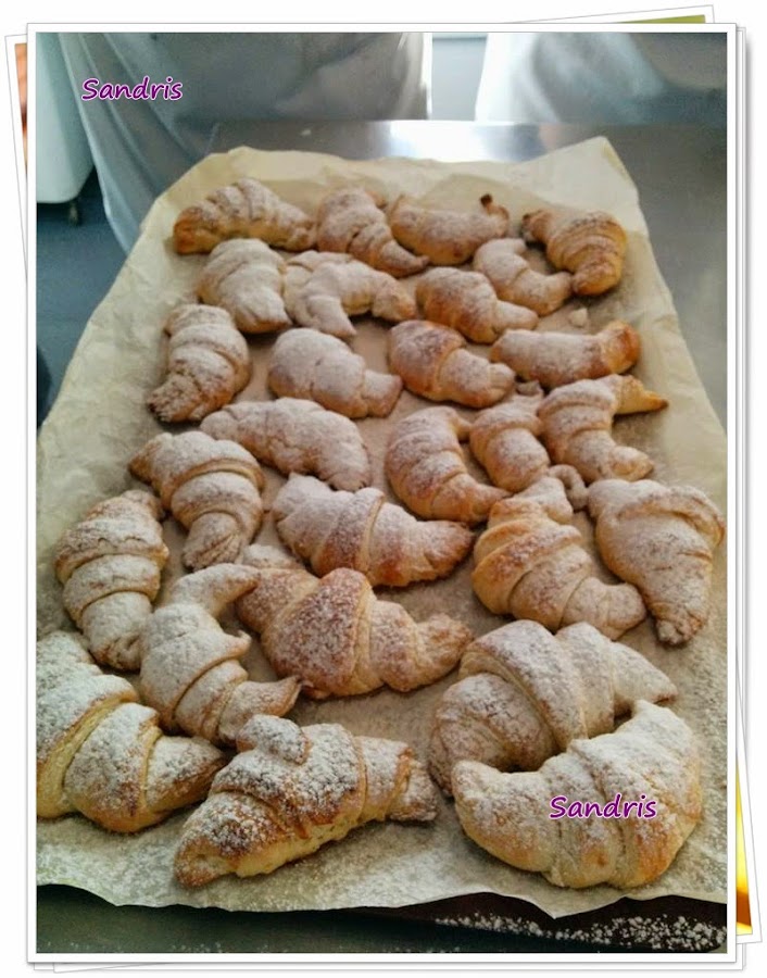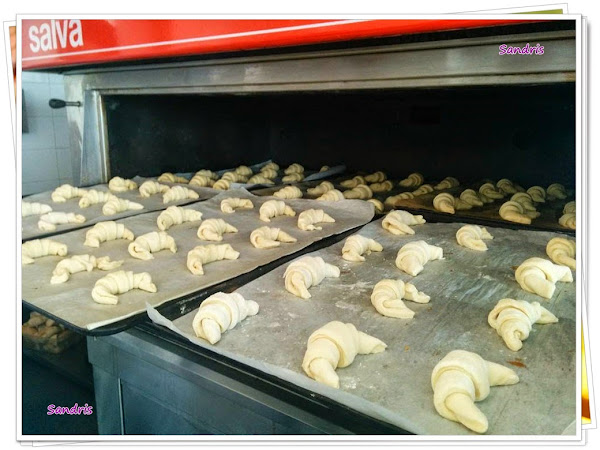 También hicimos monas y croisants. Y mira que es faena, eh? Vaya tela... Pero me encanta amasar!!! Es mucha faena y sudas la gota gorda pero y lo que me gusta!!! He disfrutado como una niña estos dos días!!! :-) Con una sonrisa en la boca durante toda la clase que no había manera de quitármela!!! :-)