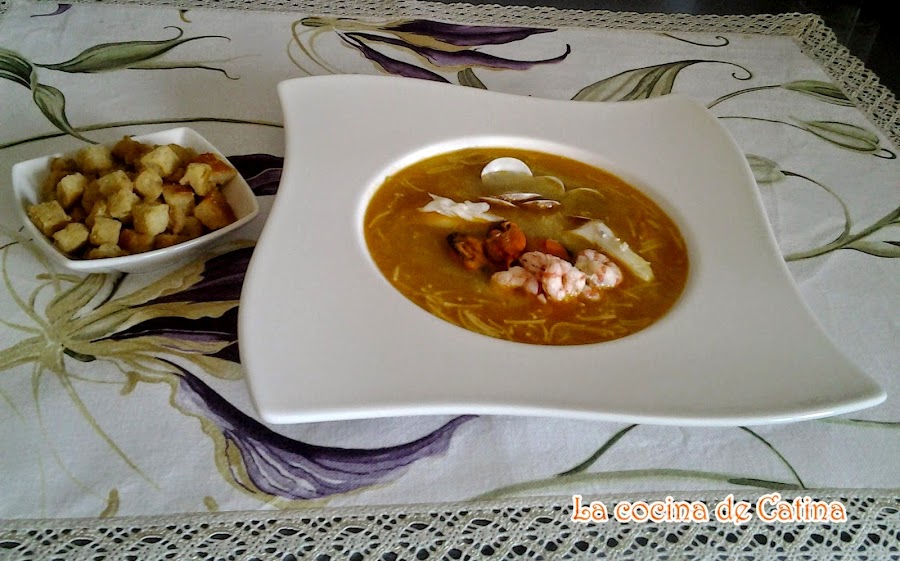 Un clásico en nuestras comidas y cenas de Navidad, la sopa de marisco. La puedes ver en el blog La cocina de Catina.