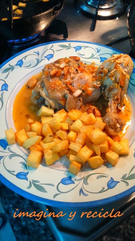 11. Ponemos las almendras sobre el pollo, también se pueden añadir a la olla junto con el caldo