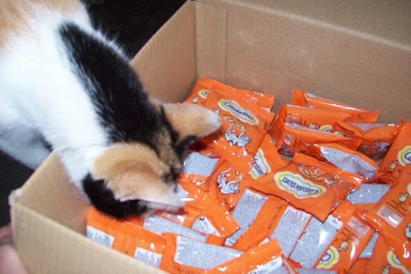 • 50 bolsitas de Catisfactions sabor pollo, 10 para Luna y 40 para compartir.