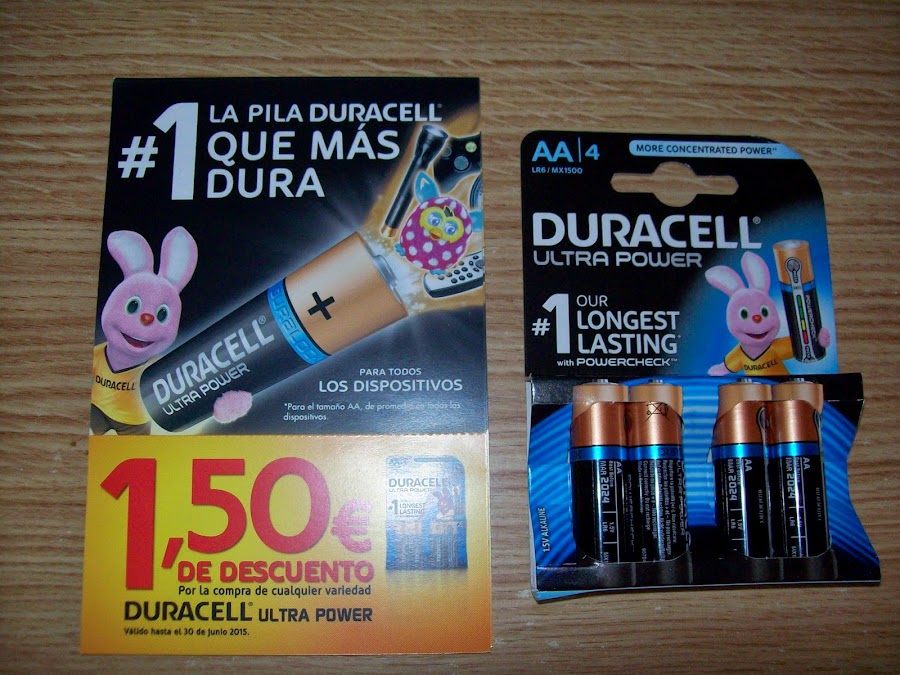 10 folletos con cupón descuento de 1,5 â?¬ en la compra de pilas Duracell Ultra Power.