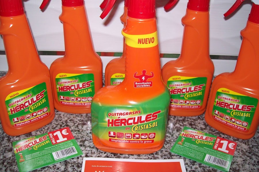 Lo conocéis? Hércules de Cristasol es un nuevo quitagrasa. Su fórmula tecnológicamente avanzada se ha desarrollado para obtener potentes resultados gracias a su acción con agentes disolventes que ablandan la suciedad y agentes tensio-activos y alcalinos que la disuelven facilitando su retirada para que nos olvidemos de frotar.
