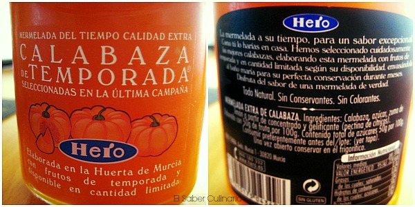 De vez en cuando me paro en la estantería de productos novedosos que hay en el supermercado que tengo debajo de casa. La mermelada de temporada de calabaza me llamó poderosamente la atención y, sin atender a su precio (1,80???), la eché en la cesta. Justo cuando llego a casa, la abro desesperadamente y ¡tracatrá!, fracaso absoluto en la primera cita. Desgranemos un poco la etiqueta del producto antes de ver si en la segunda cita mejoró el tema.