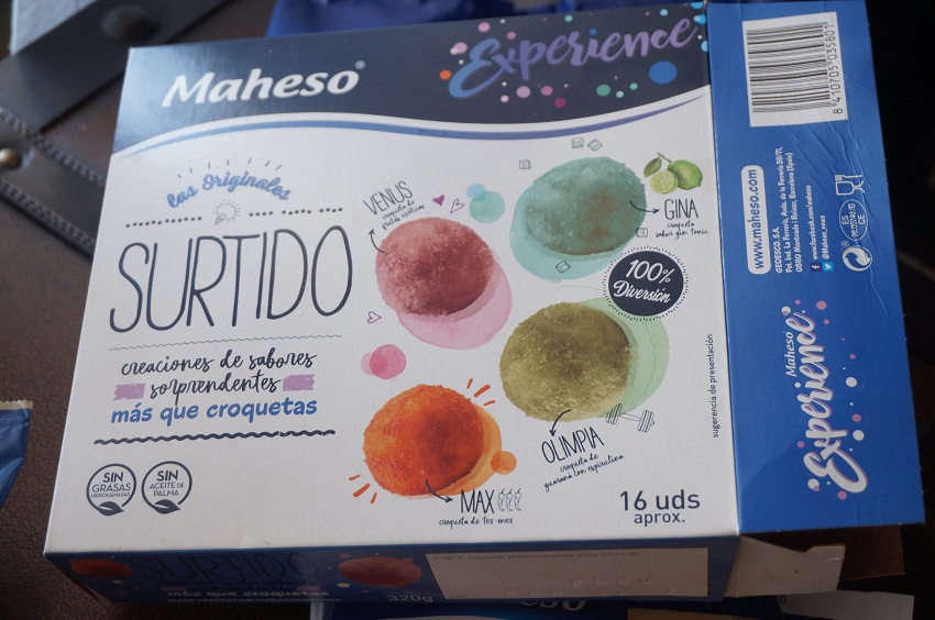 Este es un surtido de croquetas con sabores las más famosas son de Gin Tonic, otras tipo mejicanas picantes, otras con algas y otros sabores. Con esto podéis preparar un aperitivo muy divertido y lleno de sabor, si las probáis os van a gustar, como todos sus productos.