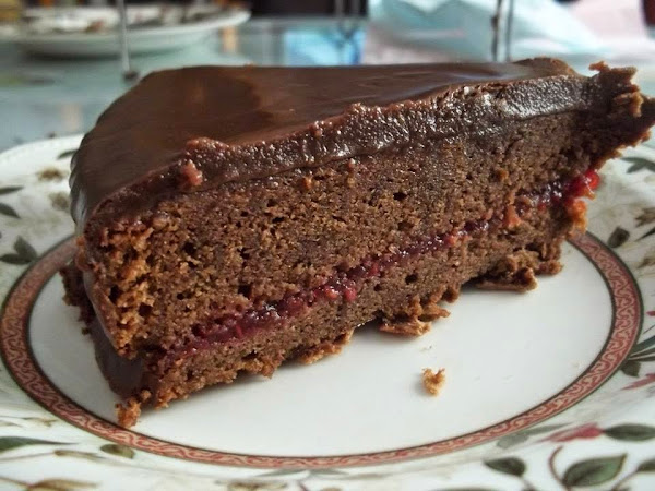 Aquí os dejo también una fotillo de la tarta Sacher que hice, seguí la receta del programa MasterChef, la única diferencia es que yo la rellené con mermelada de frambuesa y que utilicé tanto chocolate puro como con leche. Espero que os guste XD.