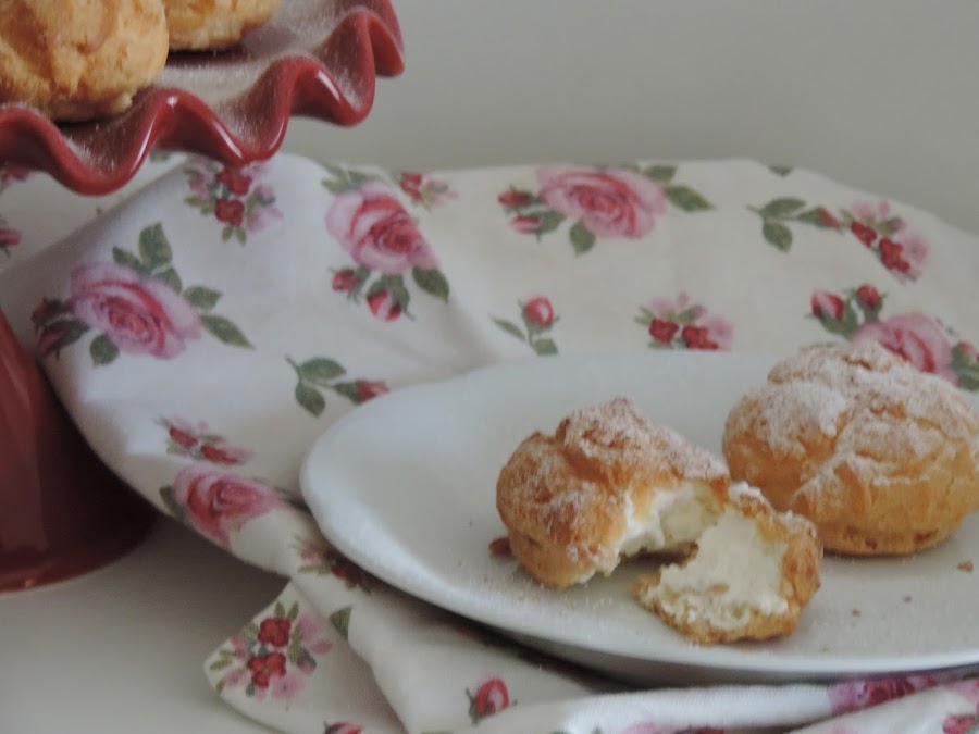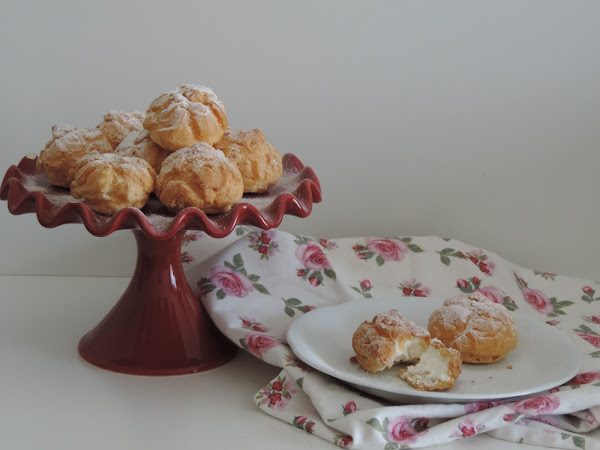 Dejamos reposar 20-25 minutos mientras precalentamos el horno a 190 grados , metemos al horno unos 30 minutos , sacamos dejamos enfriar y como mientras estan en el horno habremos montado la nata (crema de leche) , cuando esten frios , con una boquilla de las que són para rellenar hacemos un agujerito en la base de los profiteroles y rellenamos con nuestra nata (crema de leche) , si servimos fresquitos mejor......y para rematar ponemos azúcar glass espolvoreada por encima...y este es el resultado de los mios, a ver que tal.....de buenos , estan buenisimos!!!!!!!