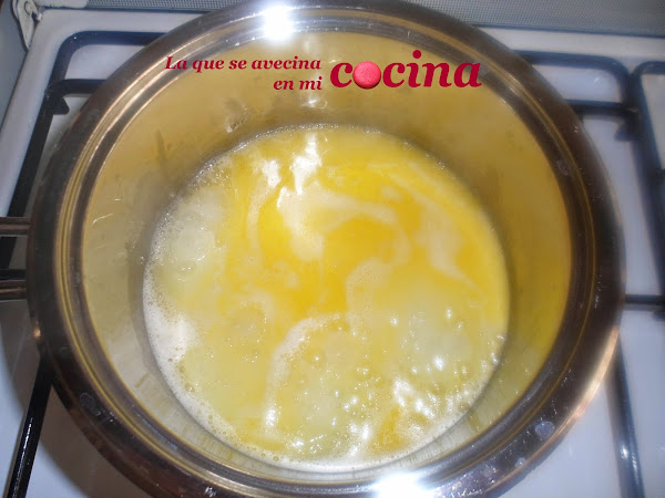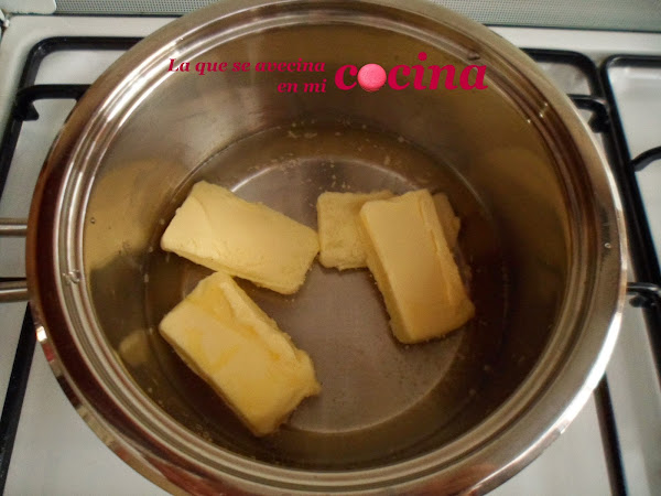 En un cazo ponemos el agua y la mantequilla.