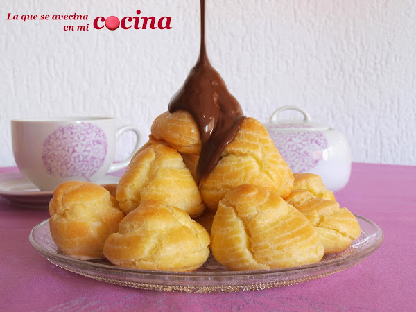 Para esta celebración tan especial para mí os traigo unos profiteroles rellenos de nata (crema de leche) y regados de chocolate. No se me ocurrió mejor postre para regalaros, ya que a mí me encantan y además al ser porciones individuales cada uno podéis coger la parte que os corresponda jajaja.