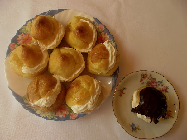 Cocinar los profiteroles en horno fuerte por 10 minutos y luego bajar el horno a mínimo y cocinar por 20 minutos más.