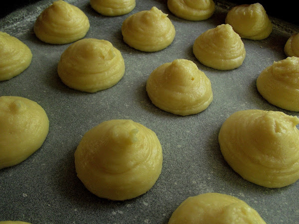 Cargar la masa en una manga con boquilla lisa y formar bolitas con la masa sobre una placa enmantecada y enharinada o forrada con papel manteca.