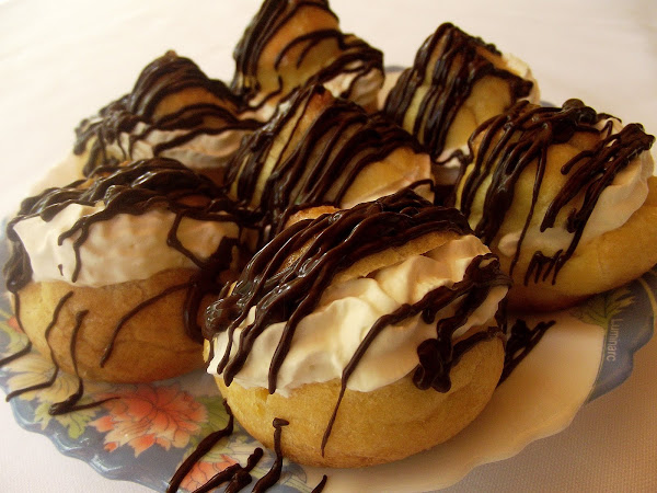 Una vez que están fríos, se cortan al medio pero si llegar a cortar del todo, de manera que queden unidos, y se rellenan con crema chantillí, dulce de leche o crema pastelera.