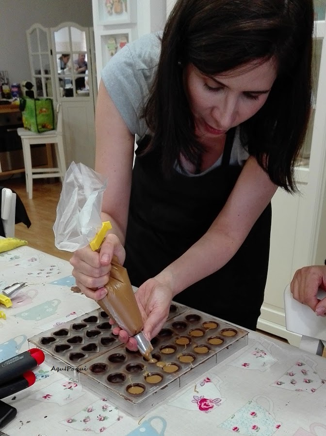 A continuación bombones rellenos, una bandeja cada una que después compartimos para llevarnos a casa de todos los sabores y formas.
