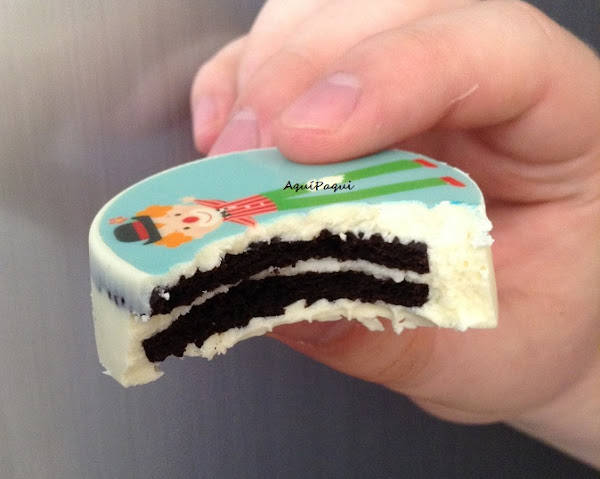 Esta vez hicimos estas galletas envueltas en chocolate o estos maxi bombones rellenos de oreos como prefiráis, y utilizamos chocotransfer para que tuviesen estos dibujos tan chulos.