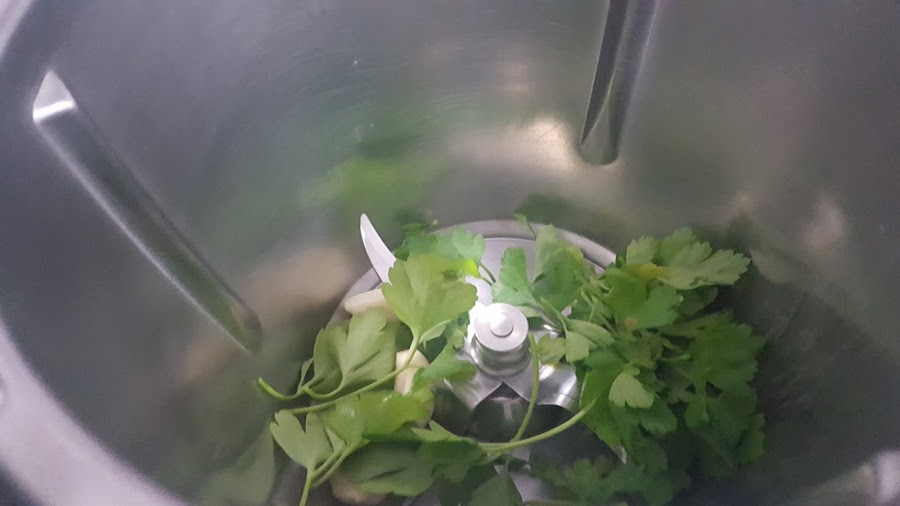 1.- Si tenéis el pan rallado, pondremos todos los ingredientes en el vaso de la thermomix y picaremos 5 segundos, velocidad 7.