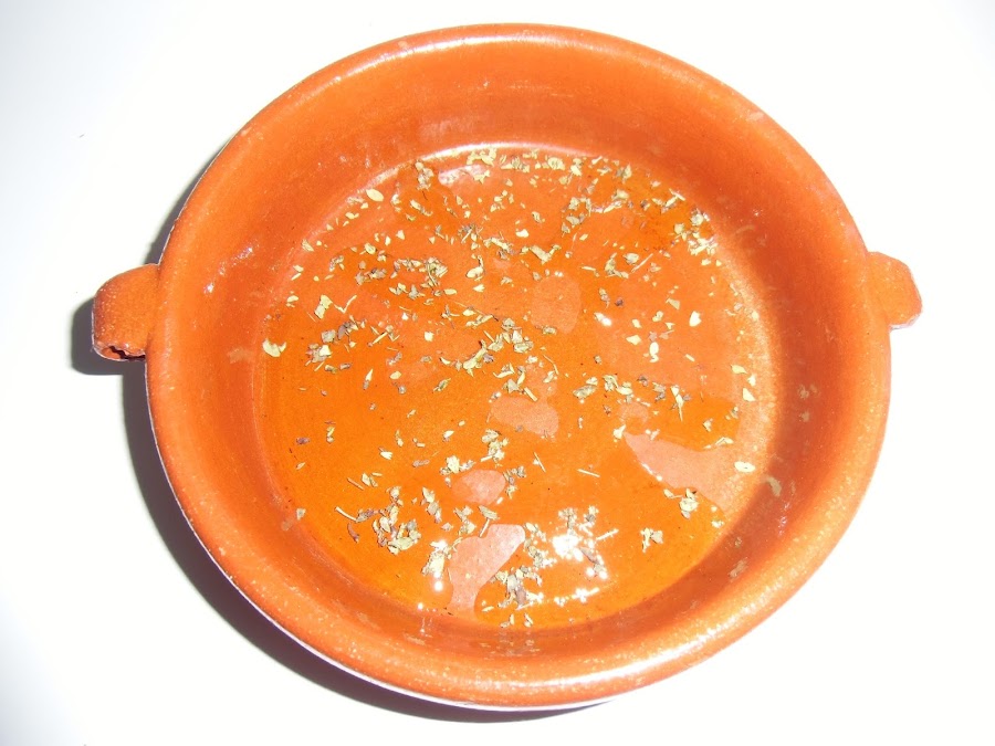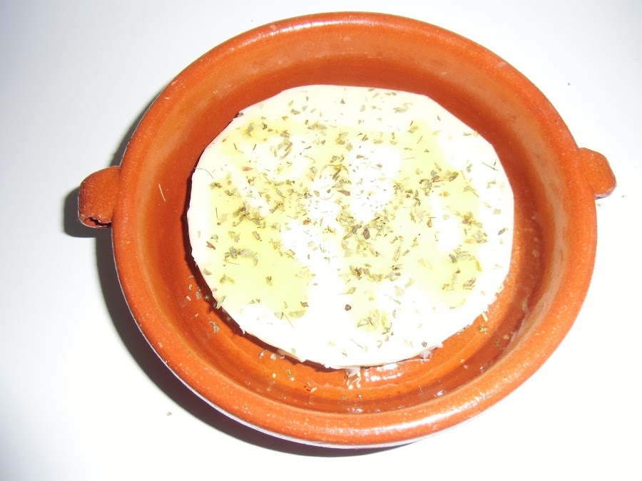 SalPreparamos una cazuelita de barro con un chorrito de aceite y un poco de orégano.