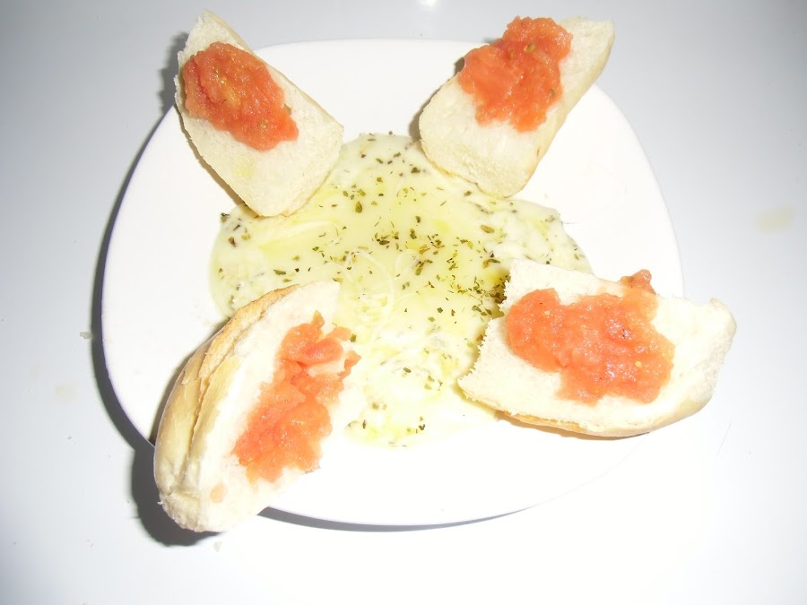 Trituramos el tomate con una pizca de sal, pimienta y tomillo, lo untamos en el pan y acompañamos el queso.