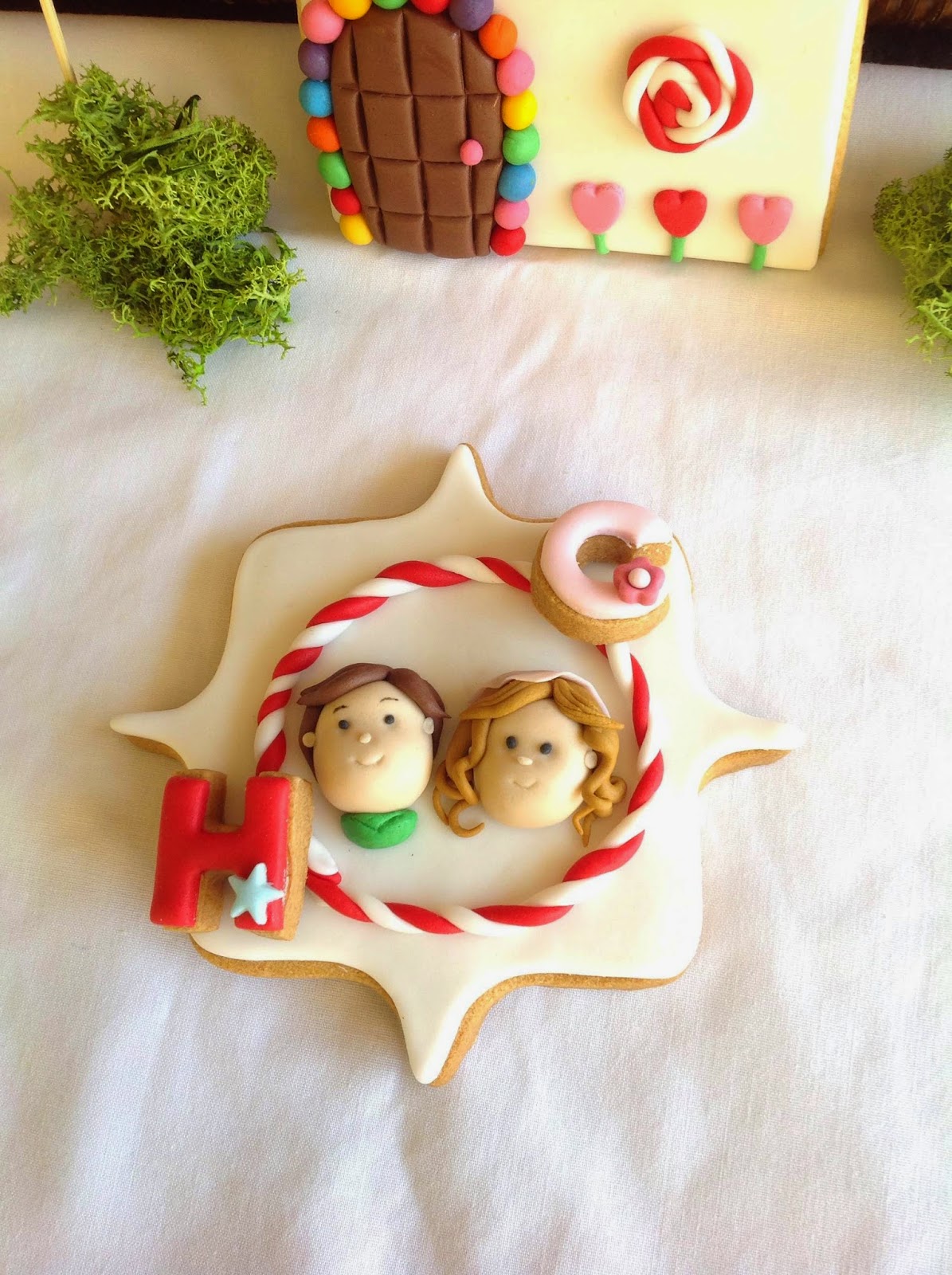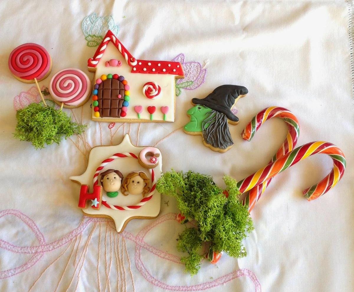 Para representar a este cuento he elegido galletitas para decorar siguiendo mi receta con limón (Pinchad aquí para tener la receta) y fondant. El fondant lo trabajamos con bastante espesor para poder hacer bien los pliegues y darle más realismo a la galleta. Para la casa me inspiré en una tarta de Natalia da Silva que es espectacular. Os dejo el enlace por si queréis verla. A mí me encantó. Pinchad aquí.