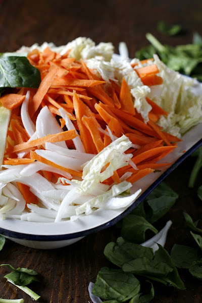 Rehogamos las verduras cortadas en juliana durante 10 minutos.