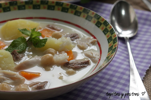 Servimos con o sin verduras y con los garbanzos. Acompañamos de unas hojitas de hierbabuena.