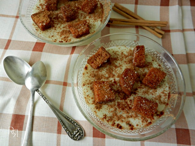 Para servirlo espolvoreamos un poco de canela y ponemos por encima los picatostes.