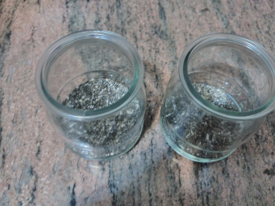 En primer lugar cogemos los vasitos donde vamos a preparar nuestro pudding. Escogemos uno en el que quepa la cantidad indicada y dejemos un hueco para añadir la fruta. Añadimos una cucharada colmada de chía, la leche vegetal que prefiramos, un poco de canela y stevia o miel al gusto. Removemos bien.