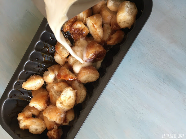 Se echa la mezcla que acabamos de hacer por encima de los donuts y los trozos quedan flotando. Normal. No pasa nada.
