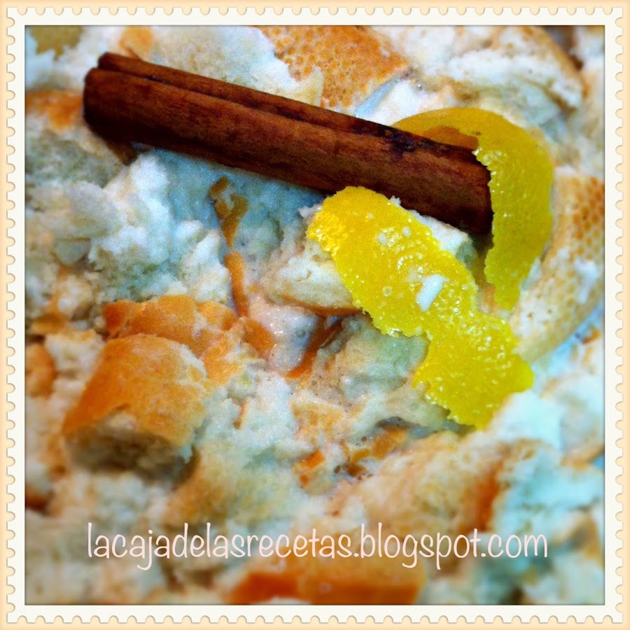 Poner a hervir la leche junto con la canela y la corteza de limón. Cuando rompa el hervor, retirar del fuego y mantener tapado unos 20 minutos para que infusione. Mientras, ir partiendo el pan en trozos no muy pequeños. Colocarlos en una fuente y empapar una media hora con la leche.