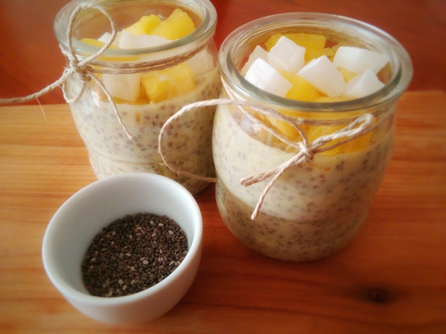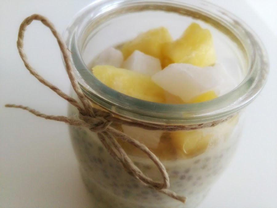 Hoy les traigo una receta saludable, rica, fresca y rápida de hacer, es un delicioso pudding de piña colada con chía, ideal para el desayuno, como postre, merienda o tentempié.