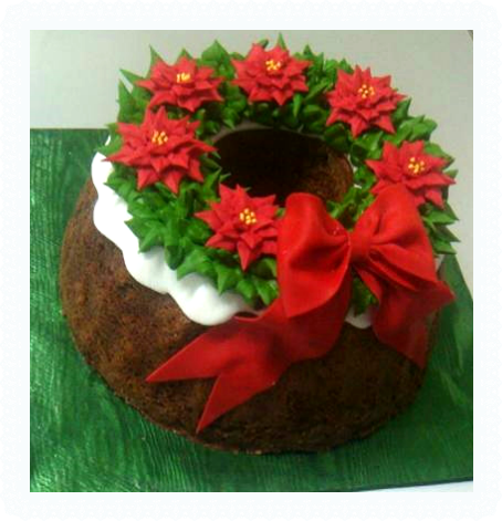 Se puede servir tal cual o podemos decorarlo con glasé de consistencia media con una manga bañar la parte superior, con una boquilla de hojas haremos una corona con glasé de color verde y con glasé rojo y un clavo para flores formaremos las flores para decorar la corona ,colocaremos unas perlitas de azúcar para formar los centros de las flores y terminaremos con un lazo de fondant rojo . Si no tienes o no quieres complicarte con las boquillas solo glaséalo y coloca unas granas o perlas de azúcar rojas y verdes por encima un bello listón de cinta en la base y lo tienes listo .