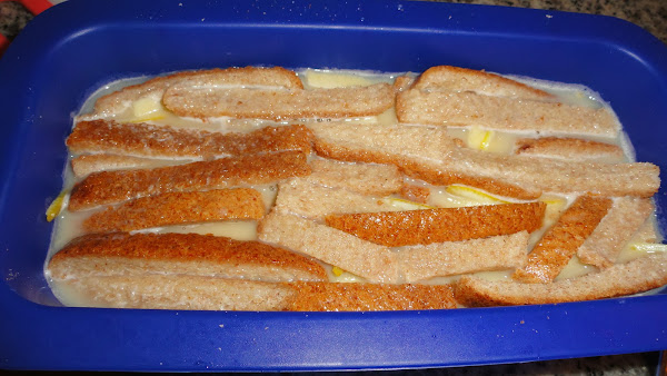 Tenía estas cortezas de pan de molde integral que sobraron de otra receta y he preparado este pudin.