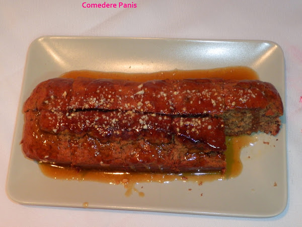 Ahora puedes cortar el pudin en porciones para que se empape mejor de caramelo y baña con la salsa el pudin.