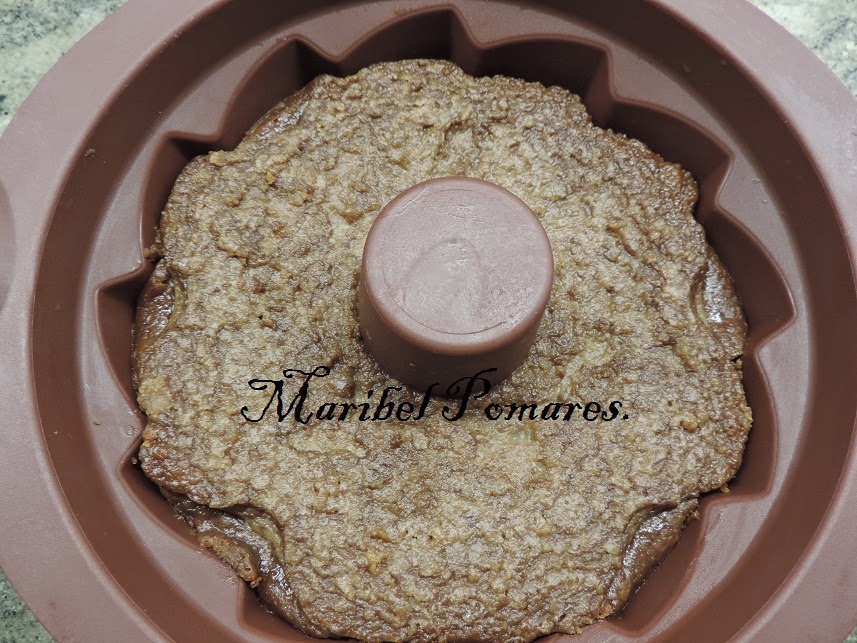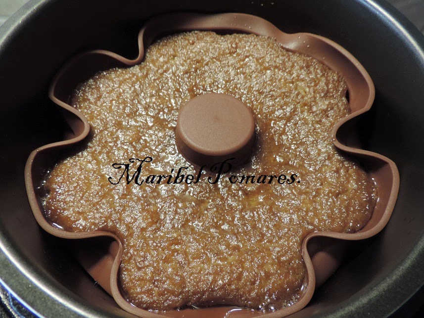 Metemos el molde de silicona en la cubeta de la olla, echamos dentro la mezcla.