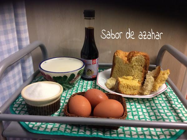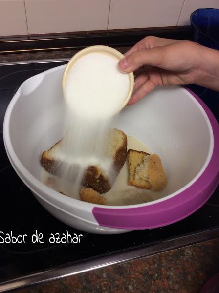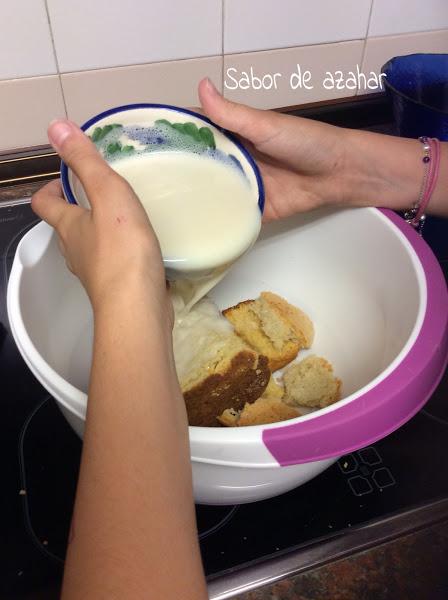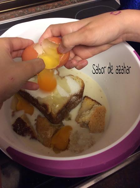 Lo primero que haremos es precalentar el horno. Los ingredientes los pongo en este orden. Primero pongo el pan y la bollería o solo el pan ya que se puede hacer de las dos formas y agrego la leche