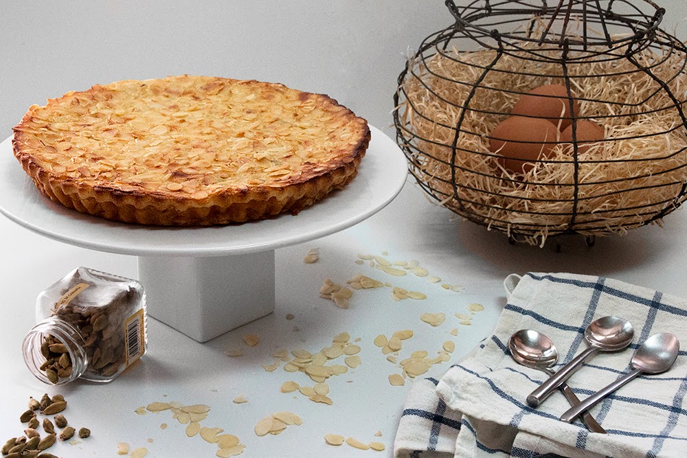 Untamos el molde elegido con la mantequilla y vertemos la mezcla en el interior. Espolvoreamos por encima con la almendra laminada y metemos en el horno 30 minutos. Podemos dejar un minuto en el horno con función gratinador para darle un poco de color.