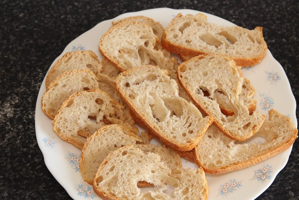 Troceamos el pan en rebanadas finas y reservamos.