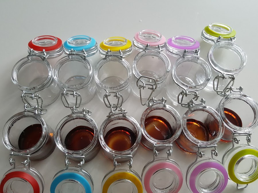Además me había comprado estos botecitos tan monos y estaba deseando estrenarlos, así que he presentado el postre en ellos, son una monería, no creeis?????
