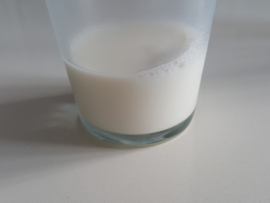 1. - Reservamos unos 100 o 150 ml de leche en un vaso.