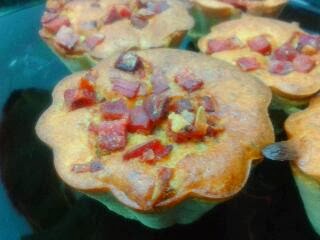 Agregamos el jamón serrano (reservamos un poco) y mezclamos. Rellenamos los moldes engrasados y ponemos más jamón por encima.