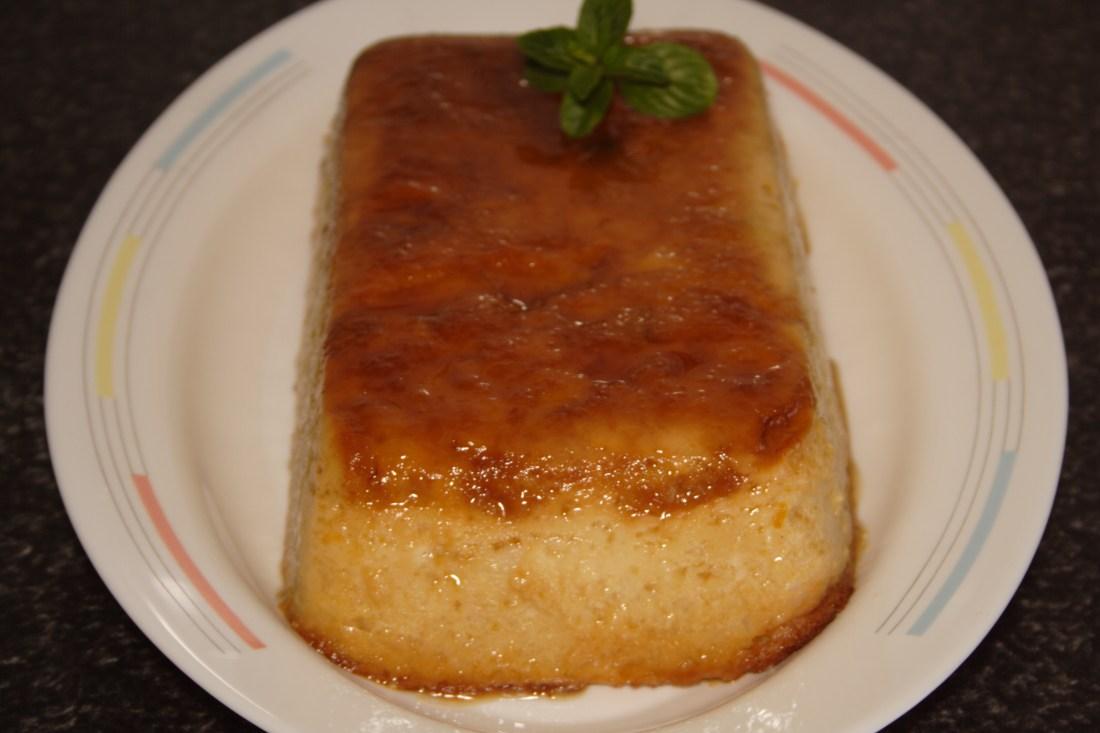 Desmoldamos y servimos fresquito. Para que nos resulte más fácil de desmoldar lo ponemos en un recipiente con agua caliente unos minutos, pasamos un cuchillo entre el molde y el pudin, todo alrededor del molde, buscamos la fuente o plato de presentación y volvamos el pudin.