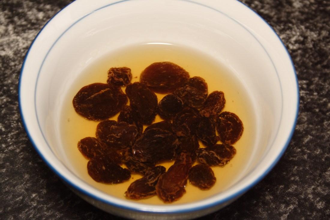 Ponemos a remojo las uvas pasas en el ron. Reservamos.