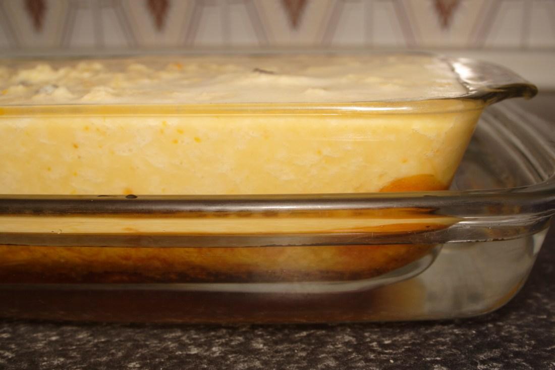 Metemos nuestro molde en otro más grande con agua (la suficiente para que al hervir no encharque el postre) y cocemos en el horno a baño María a 180ºC, calor arriba y abajo, durante 50 minutos.