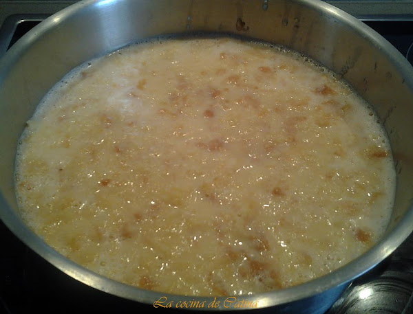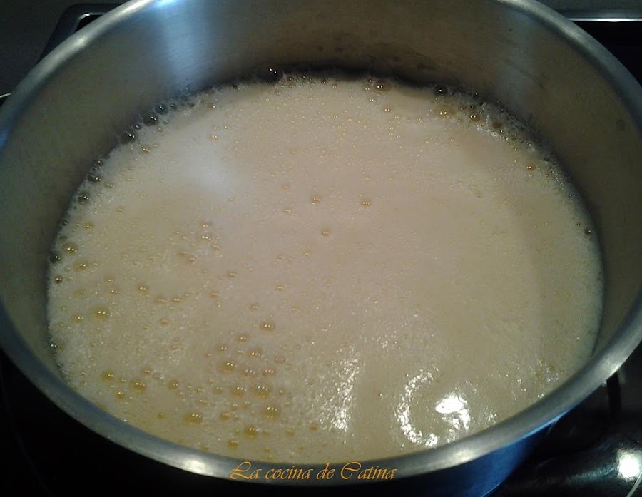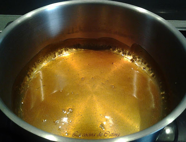 En un molde para pudin se ponen a calentar 2 cucharadas de azúcar con tres de agua y unas gotas de zumo de limón. Cuando empieza a tomar color oscuro se retira el molde del fuego, deslizando el caramelo por el fondo y las paredes del mismo hasta cubrirlo. Dejar enfriar.