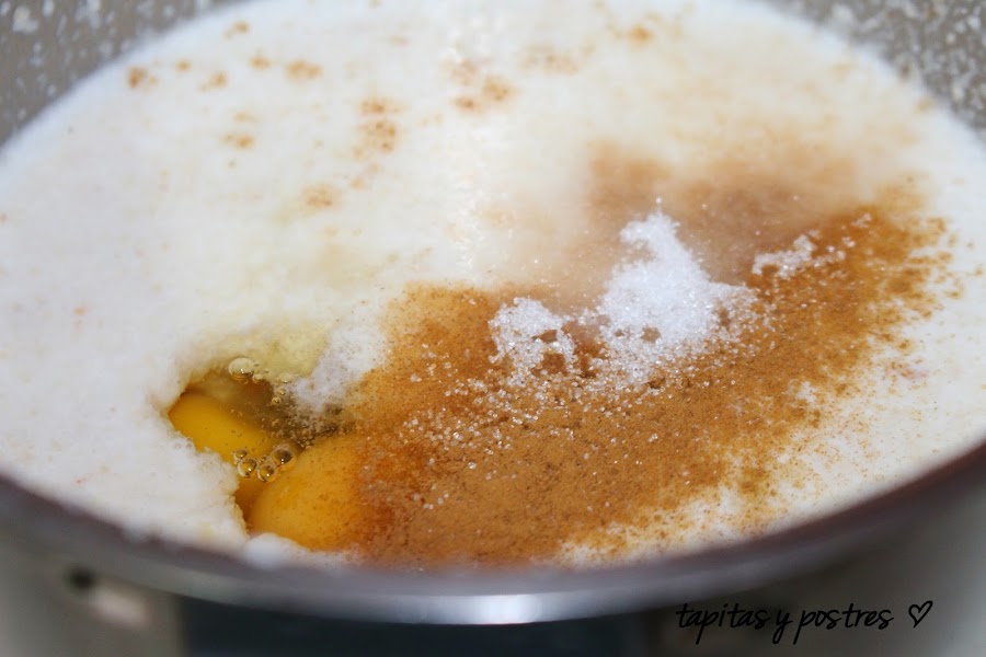 Y los huevos, azúcar vainillado y canela.