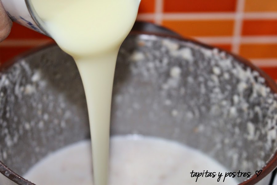 Añadimos la leche condensada.