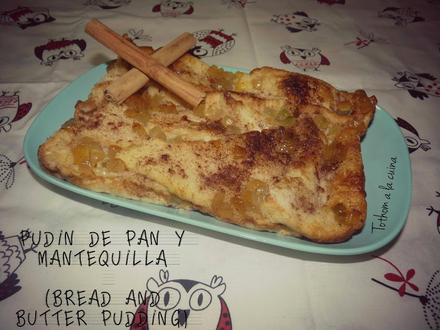 Es un postre tradicional popular en la gastronomía del Reino Unido. Se elabora apilando rebanadas de pan con mantequilla y algunas pasas en una fuente para horno en la que se vierte una mezcla de huevo y leche. Se hornea y se sirve. Se puede acompañar de natillas o crema, pero el budín es lo suficientemente jugoso por dentro como para tomarse sin salsa.
